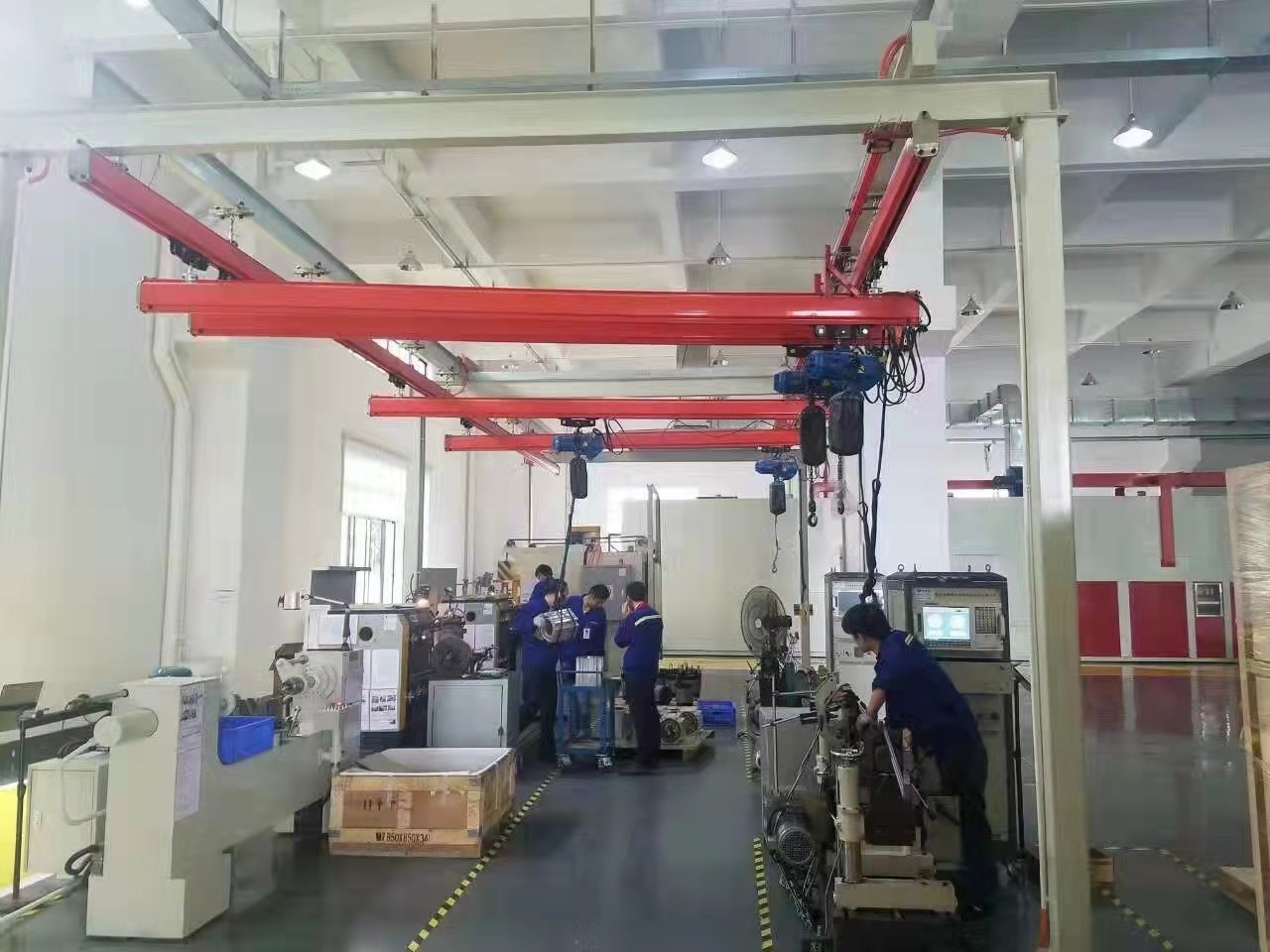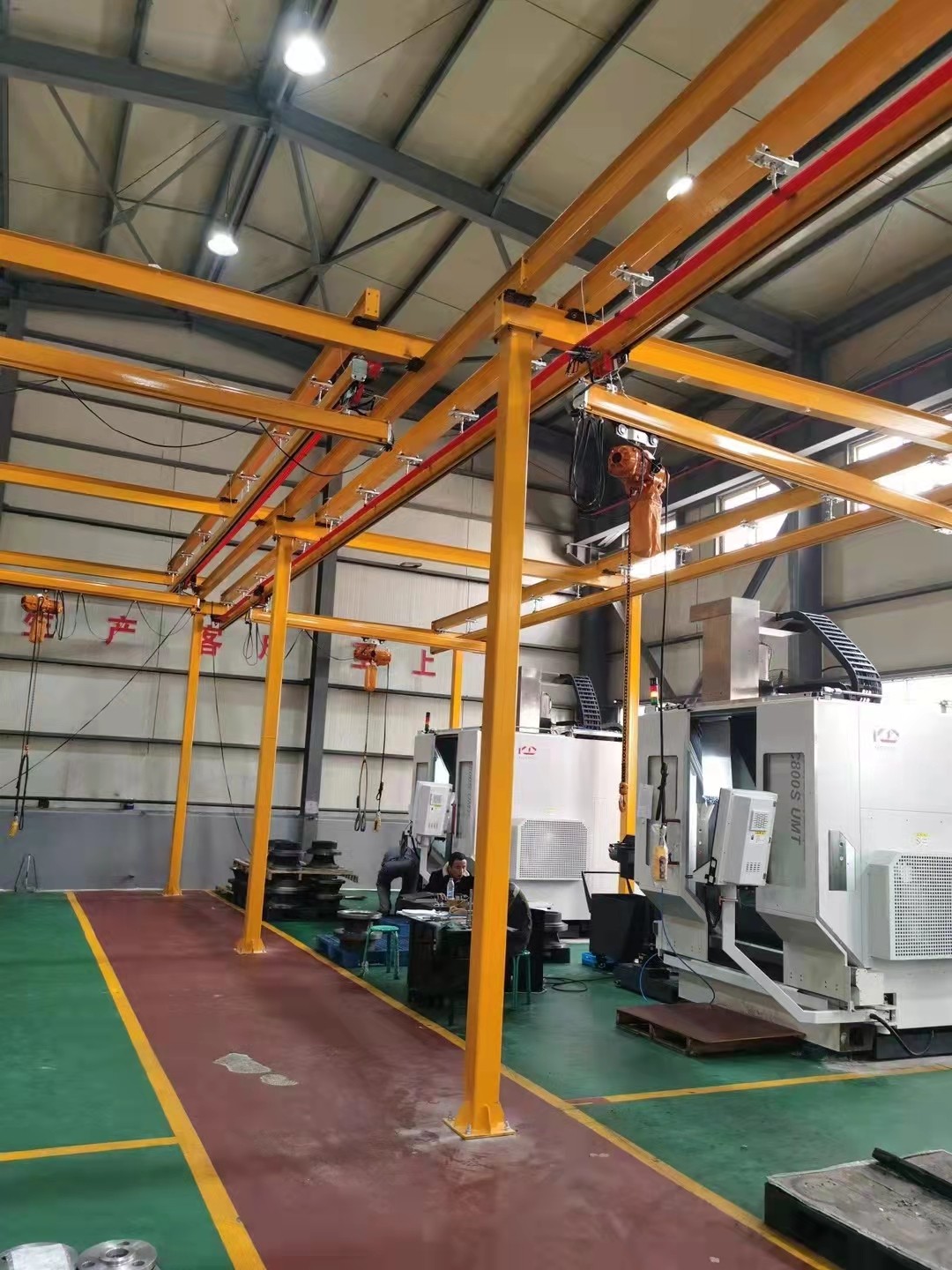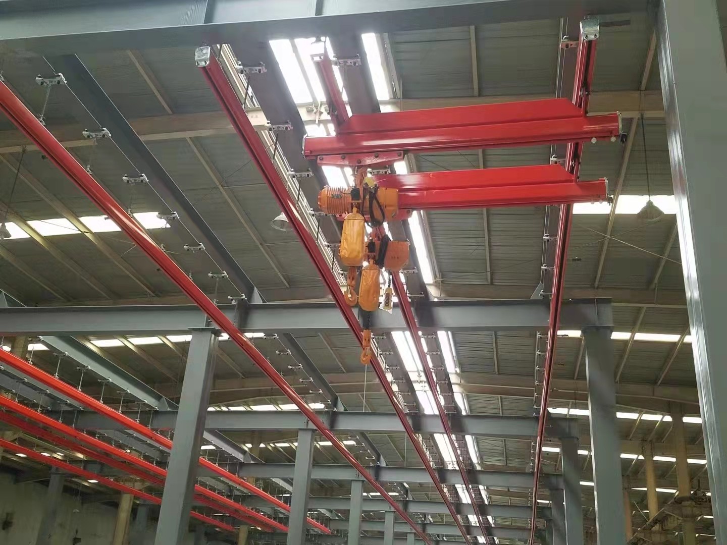 KBK起重機(jī)標(biāo)準(zhǔn)組件。由懸掛裝置、軌道、道岔、行走小車、電動葫蘆、移動供電裝置(滑線)以及控制裝置等組件組合而成,起升裝置主要采用環(huán)鏈電動葫蘆,也可吊掛一些機(jī)械手或焊槍之類,作為工具滑軌使用,起重量一般不超2000kg。