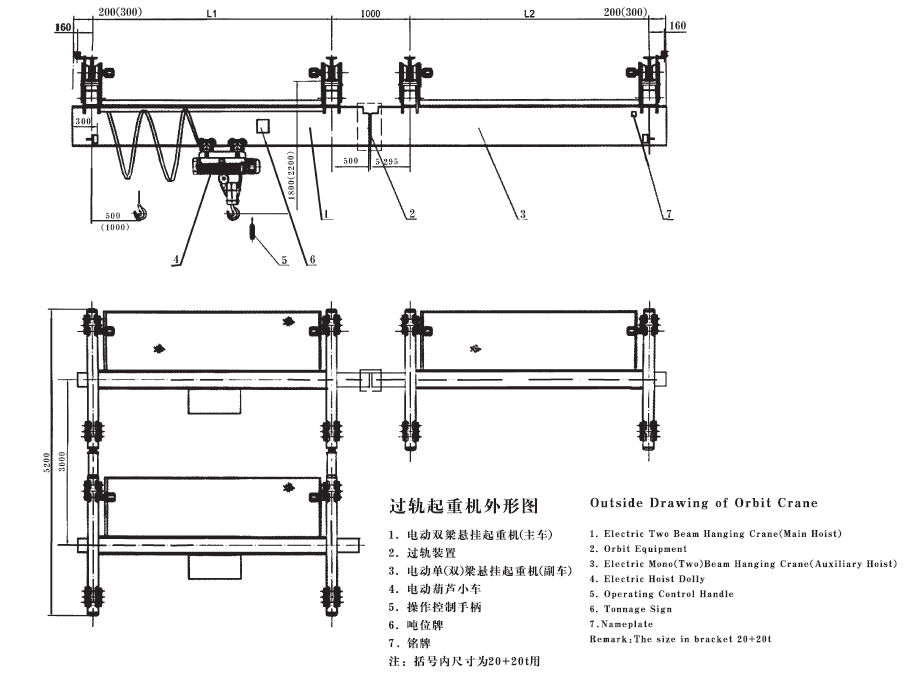 3、 該產(chǎn)品屬于組合設(shè)備,由電動(dòng)葫蘆小車(chē)、電動(dòng)雙梁懸掛起重機(jī)(主車(chē))、(手)電動(dòng)單(雙)梁懸掛起重機(jī)(副車(chē))和過(guò)軌裝置組成。