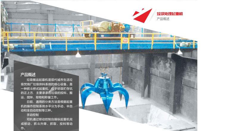 1、 垃圾抓斗起重機是現(xiàn)代城市各種垃圾焚燒發(fā)電廠垃圾供料系統(tǒng)的核心設備,位于垃圾儲存坑的上方,主要承擔對垃圾的投料、搬運、攪拌、取物和稱重等作業(yè)。